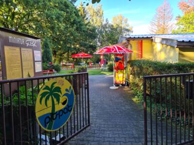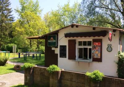Der dazugehörige Kiosk bietet gekühlte Getränke, Eis oder Kaffee zur Stärkung an. Der ruhige Biergarten lädt Groß und Klein zum Verweilen ein. Zahlreiche Bäume spenden dort an heißen Sommertagen ausreichend Schatten. Ein ideales Ausflugsziel für Familien mit Kindern!
