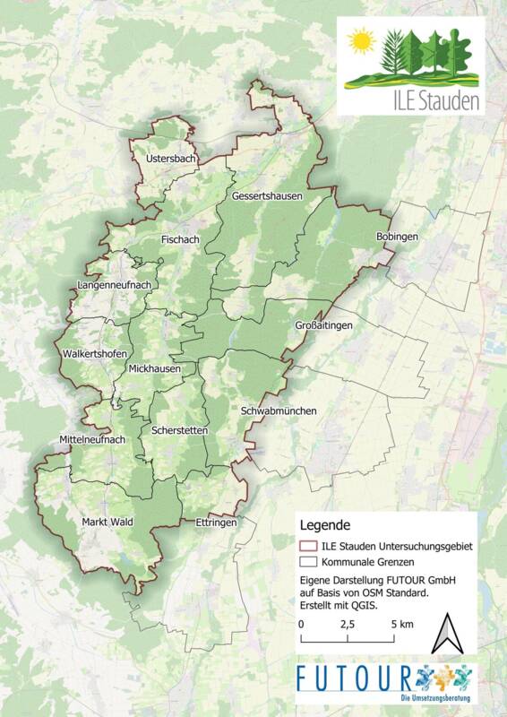 Die Integrierte Ländliche Entwicklungsregion (ILE) Stauden besteht aus 13 Kommunen: Bobingen, Ettringen, Fischach, Gessertshausen, Großaitingen, Langenneufnach, Markt Wald, Mickhausen, Mittelneufnach, Scherstetten, Schwabmünchen, Ustersbach und Walkertshofen.