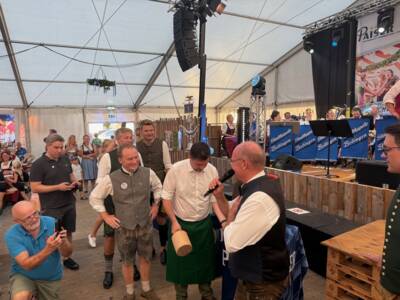 Ein Höhepunkt der Eröffnung war der gemeinsame Fassanstich: Erster Bürgermeister Klaus Förster überließ diesen seinem französischen Amtskollegen Xavier Bartoszek, der die Aufgabe souverän meisterte. Im Gegenzug verlieh Bürgermeister Klaus Förster dem Kopierre den Orden – eine Aufgabe, die in Frankreich traditionell dem Stadtoberhaupt vorbehalten ist – damit setzten beide ein symbolisches Zeichen der Freundschaft, die beim Jubiläumsfest spürbar gelebt wurde.